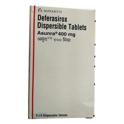 How Asunra 400mg 30 Tablet, Novartis WorksAsunra 400mg Tablet traps and removes excess iron which is then excreted mainly in the stools. This reduces the risk of organ damage.